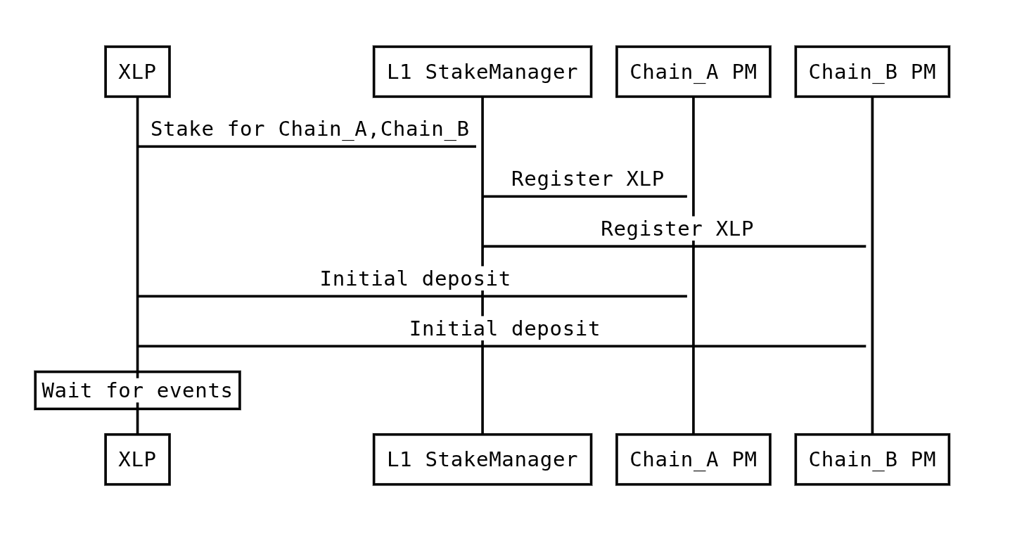 XLPs (Crosschain Liquidity Providers) register and deposit funds in the CrossChainPaymaster on multiple chains. In addition they lock a stake on L1 in L1CrossChainStakeManager. The unstake delay is 8 days - longer than the max L2 finality time. If an XLP starts the 8 days unstaking process, it immediately gets unregistered.