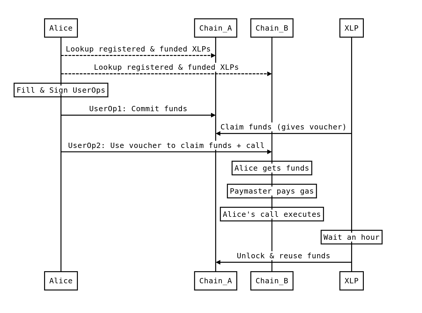 - Alice appends the XLP’s voucher to her Chain_B UserOp’s signature and submits it to Chain_B.