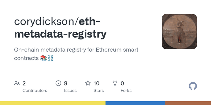 Just wrapped up releasing a new version of an on-chain metadata registry that allows deployment keys to link IPFS hashes to contract addresses. Users can also self-attest to a piece of data.
