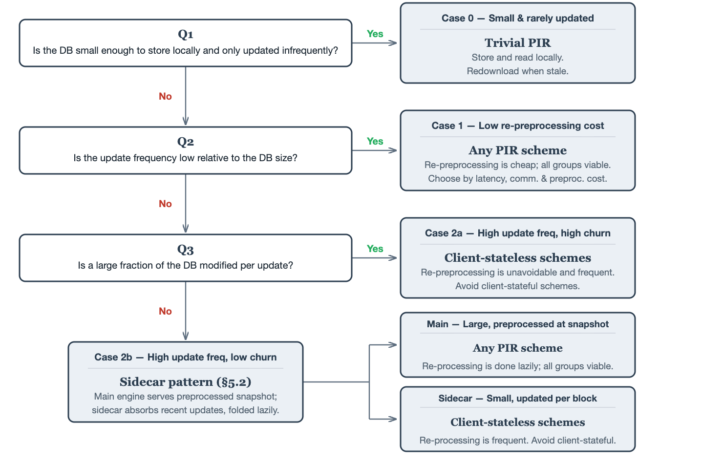 If Ethereum data is sharded so as to pair every dataset to the optimal PIR scheme for it, we could achieve better overall performance with the same privacy guarantees had we used one scheme for the entire Ethereum state —as long as users query all schemes with decoy queries parallelly to the real query.