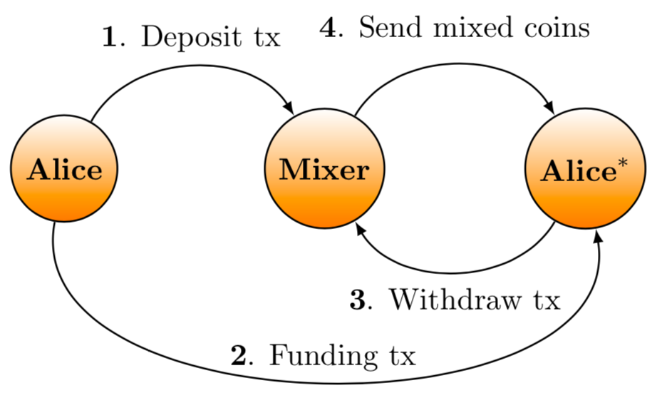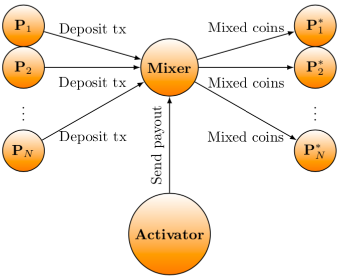 Möbius, Miximus by @barryWhiteHat, MixEth and other mixer proposals work as follows: