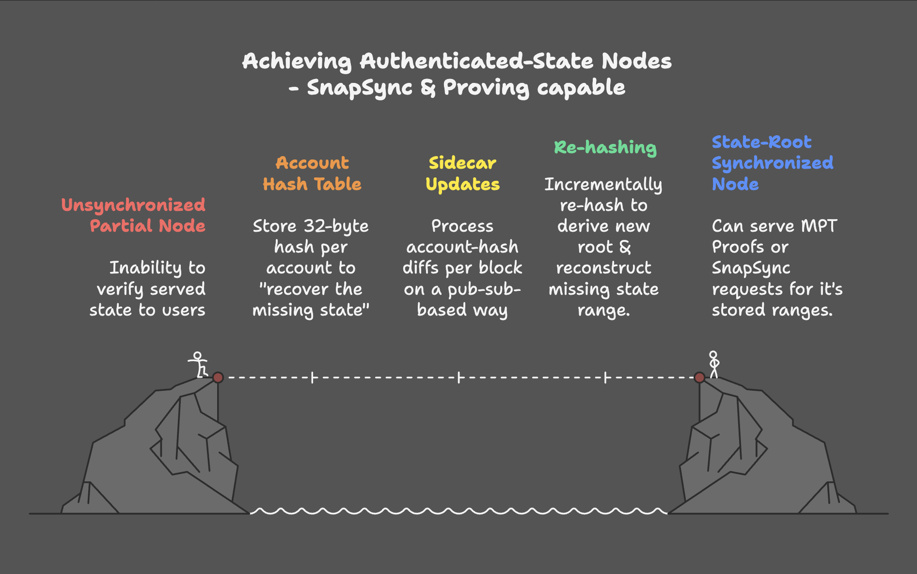 Through account-level commitments and per-block sidecars, it is possible for nodes to recompute the state root, prove correctness for their subsets, and even contribute authenticated data to snap sync.