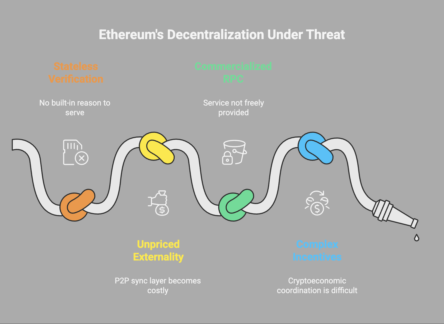 The consequences extend far beyond performance. Ethereum’s security model relies on universal re-execution — the ability of any node to deterministically recompute state transitions. Once that ability is lost, state obtention from RPCs becomes an act of trust, not verification (as no proofs are served with such messages), and the decentralized execution layer begins to centralize in subtle but irreversible ways.