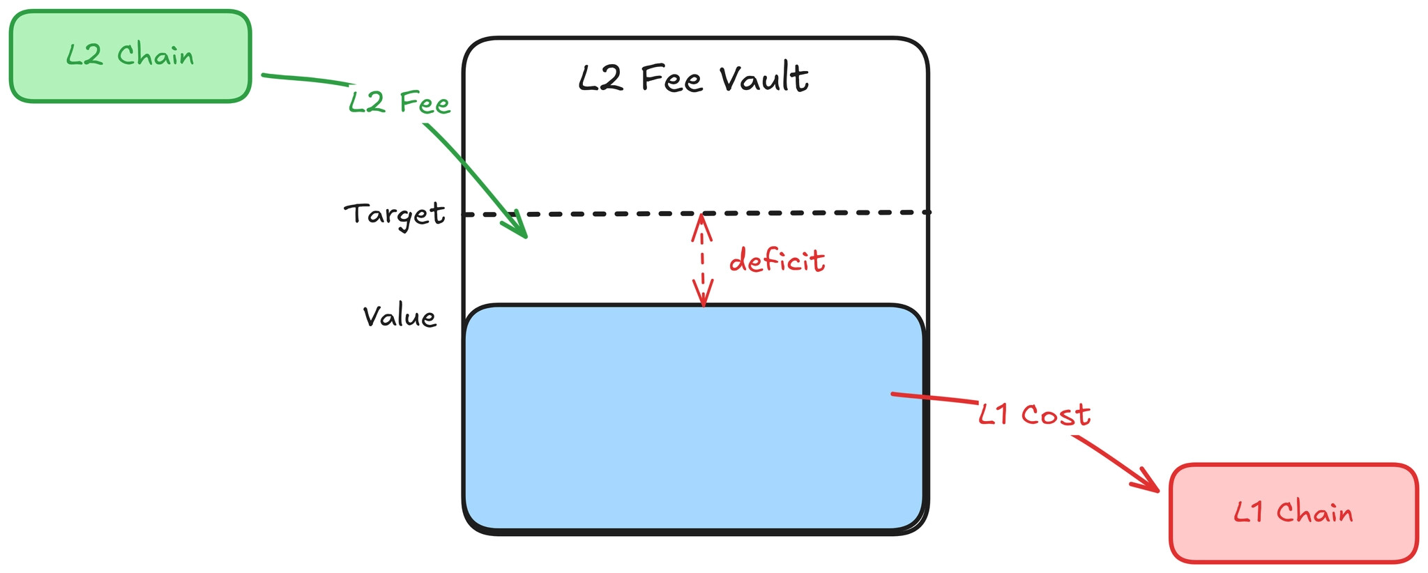 - Feedback → Observing the vault balance and adjusting the L2 fee based on the observed gap from the target balance.