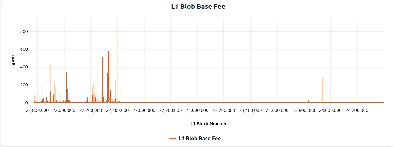 And if we zoom into a blob fee spike timeframe: