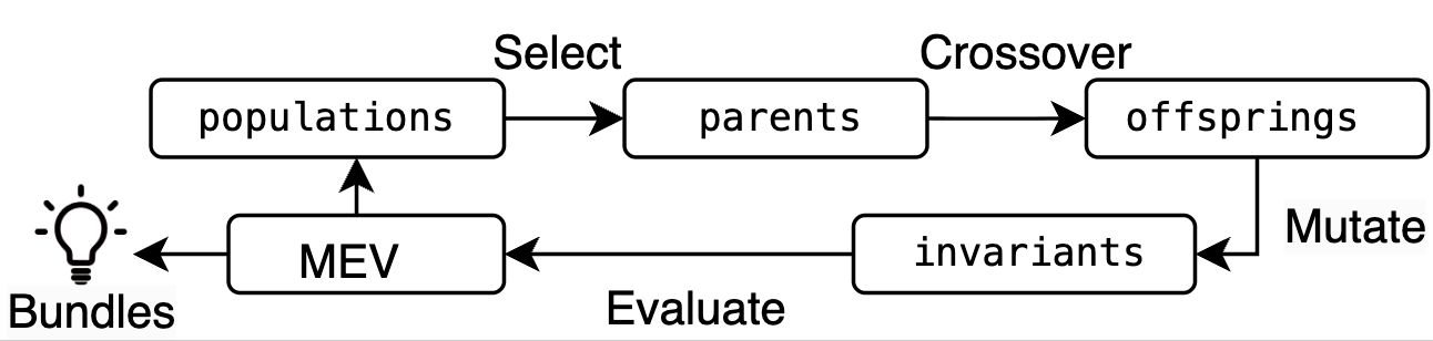 - Mutation – tweak DEXs, tokens, or ordering to get new bundles as invariants